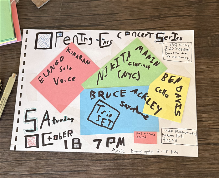 Greetings! I am thrilled to announce the next installment of the opening ears concert series. On Saturday, October 18 will be welcoming Elango Kumaran (solo voice) and a trio of Nikita Manin from New York on Clarinet,