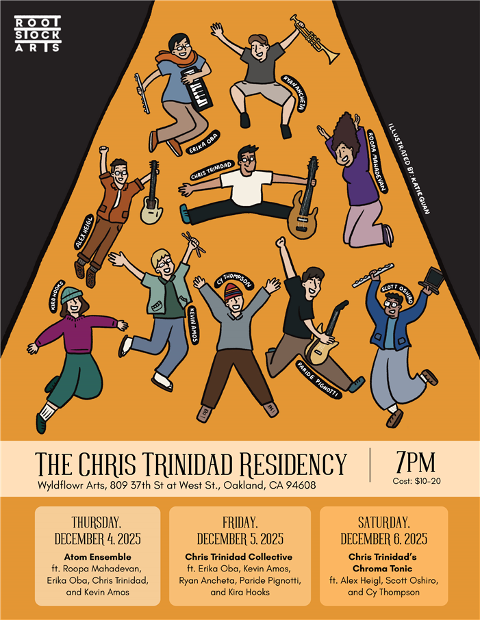 Chris Trinidad Residency is 'The Atom Ensemble'. The Atom Ensemble seeks to integrate jazz, musical theater, improvisation, Japanese folk music, Original Pilipino Music, and Indian Carnatic Music to create new cultural pathways.