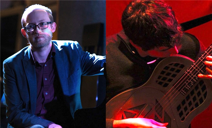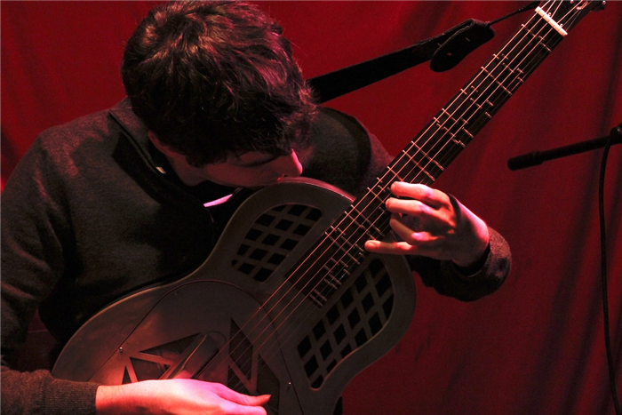 Guitarist GIACOMO FIORE premieres Gift by MATT SARGENT, a set of 13 variations for guitar and electronics on the Shaker tune “Simple Gifts.” The piece was commissioned by Fiore for just intonation resophonic guitar, an instrument originally conceived for the composition of Lou Harrison’s Scenes from Nek Chand in 2002. In Gift, the original tune is buried and unheard an octave below the range of the guitar. What we hear, instead, is music blooming up from the ground that is made out of the harmonics of “Simple Gifts.” As these overtone flowers take shape on the guitar, a ghost occasionally emerges on the right side of the stage, building a halo of resonance around the guitarist.