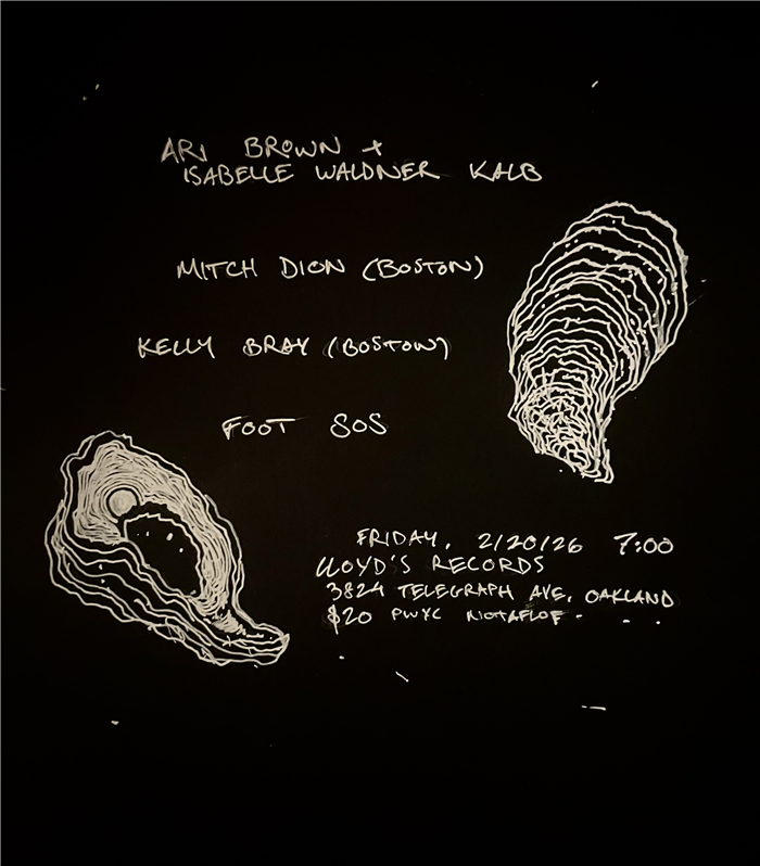 Lloyd’s Records and associates are proud to welcome rising stars Kelly Bray (trumpet and electronics) and Mitch Dion (electronics) from Boston for two solo sets, bookended by local duos: Ari Brown (trumpet) and Isabelle Waldner Kalb (guitar), and Foot SOS (electronics).