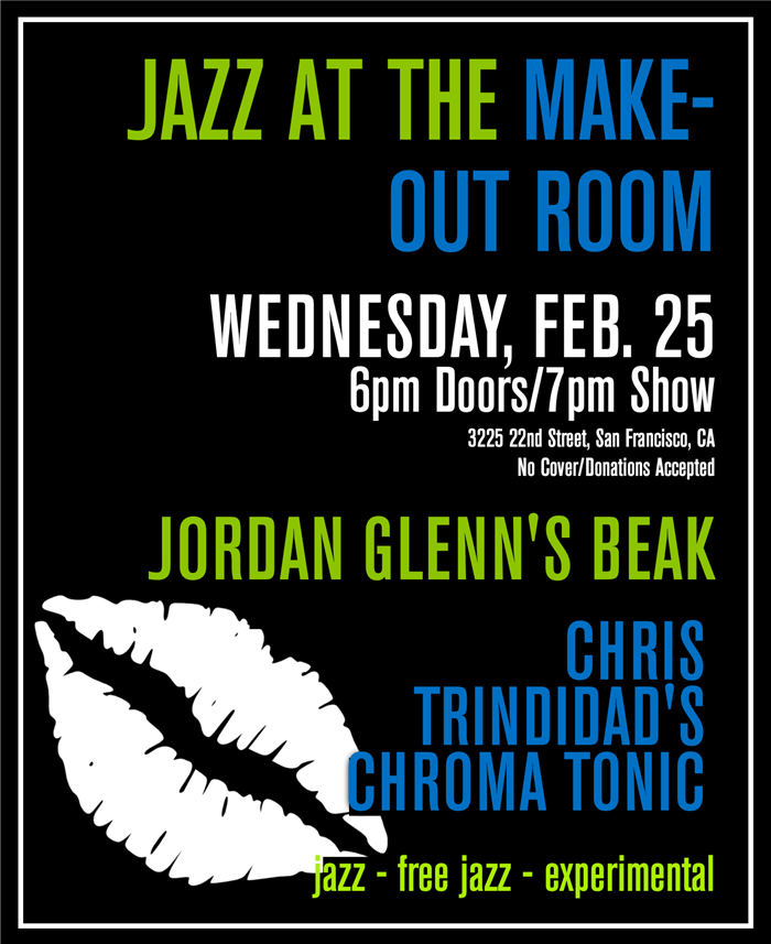 Jazz at the Make-Out Room (formerly the Monday Make-Out) continues! A wily evening of cutting-edge jazz, free improvisation, and creative music.