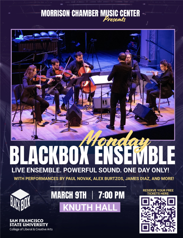 Click to make donation Chamber Music Center as the Blackbox Ensemble takes the stage for a one-night-only performance.