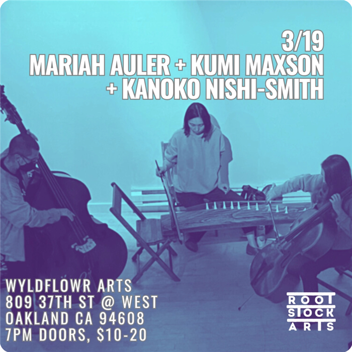 Kanoko Nishi-Smith (koto) bring together three unamplified string instruments in an improvising trio that explores texture, melody, and interplay as they push and pull on their instruments’ similarities and differences. Each of their unique voices shine in the sparseness of the instrumentation, mounting in moments of intense and intimate expression.