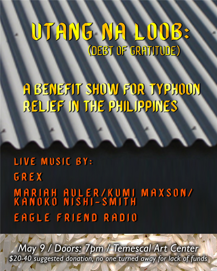 Utang Na Loob (Debt of Gratitude): A Benefit Show for Typhoon Relief in the PhilippinesA brilliant array of artists gather for an evening of modern Filipino music, benefitting typhoon relief in the Philippines. Featuring experimental/art rock band Grex, the trio of Mariah Auler,